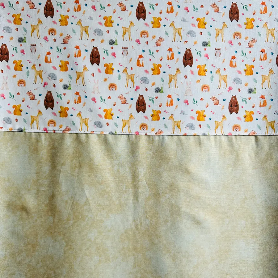 Se ha utilizado una tela con estampado fabricada 100% en algodón. Es un material de alta calidad pensado para la piel sensible de los más pequeños. Esta tela no solo es suave y cómoda, sino que también es transpirable, ayudando a mantener una temperatura adecuada mientras el niño o niña duerme. Se puede lavar en la lavadora las veces que haga falta sin ningún problema, manteniendo siempre su suavidad y color vibrante, lo que garantiza una larga durabilidad del producto.