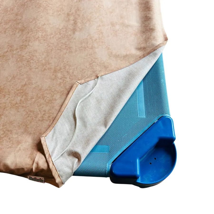 La sábana se puede amoldar a las medidas desde 50 cm de ancho x 124 cm de alto hasta 60 cm de ancho x 135 cm de alto. Gracias a su diseño flexible y ajustable, se adapta a una variedad de tumbonas y camas apilables, proporcionando siempre un ajuste seguro y cómodo. Este rango de medidas hace que sea una opción versátil para diferentes tamaños y estilos de camas en guarderías y colegios.