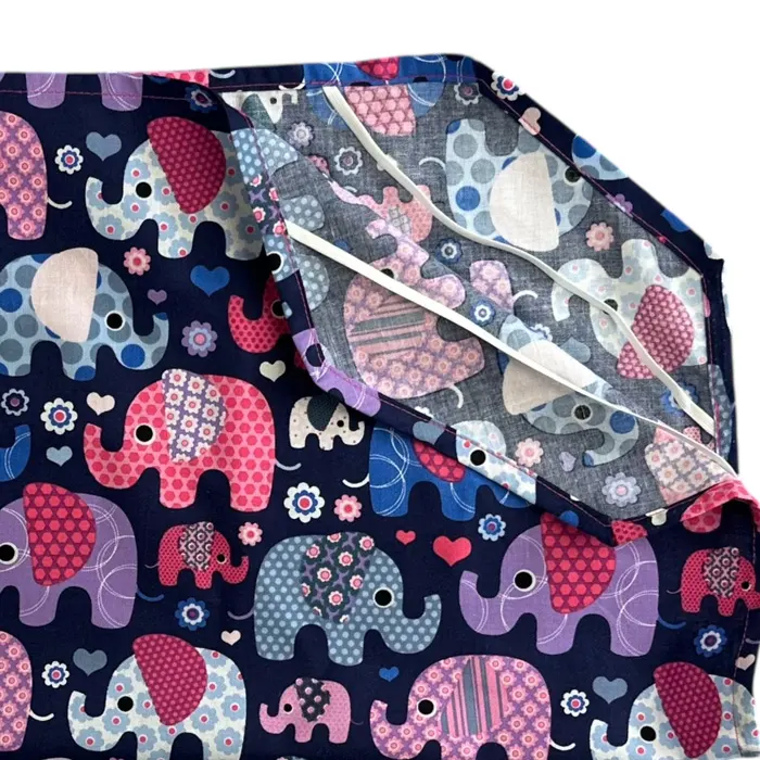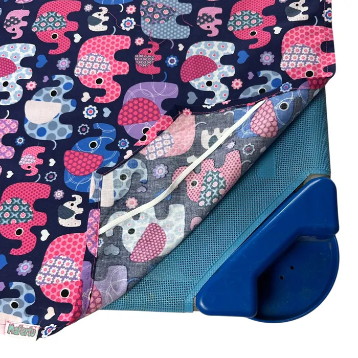 Sábana hamaca guardería elefantes especialmente diseñada para utilizar en una tumbona como ropa de cama para las hamacas apilables que tienen en muchos colegios. Tiene gomas en las esquinas para poder ajustarla a la perfección sin que se desplace cuando el niño o niña se mueva durante la siesta. Estas gomas son elásticas y de alta resistencia, asegurando que la sábana permanezca en su lugar y brinde comodidad durante todo el tiempo de descanso.
