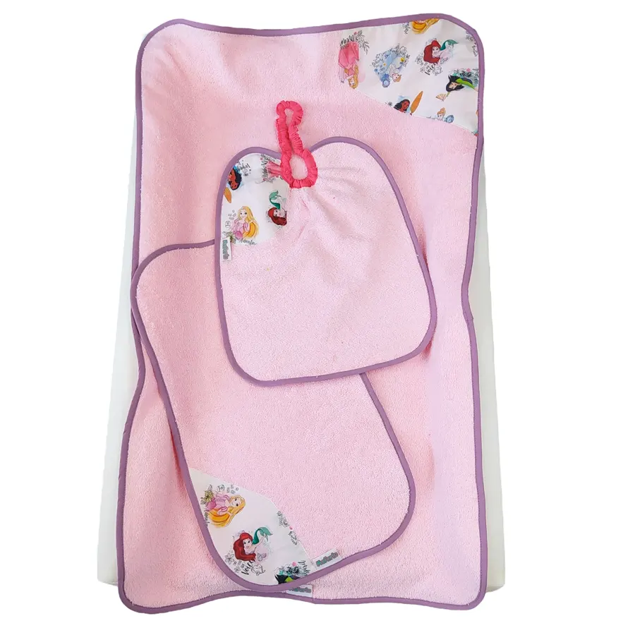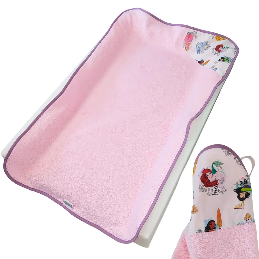 Esta toalla cambiador princesas se utiliza en el jardín de infancia para cambiar a los más pequeños en el aula favoreciendo la higiene. Esto se debe a que utilizan un cambiador común, pero cada niño y niña tiene su toalla individual para realizar esta acción.
